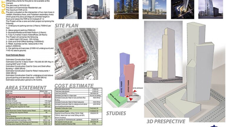 The project is a 6 new plots located in Al Hamra district in JEDDAH; the aim is to develop a mixed use project having plot H1 comprising an area of about 7875 sqm as Retail/Offices.