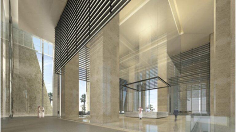 The Iconic Tower of the Head Quarter of Al Rajhi Bank in the prestigious Commercial Area shall become one of the Land Marks in Riyadh City. The Four Piers are surrounding the office glass facades to save it from the sun heat of the region. These Piers accommodates all services areas from Elevators, staircases, toilets, etc, thus clearing the floor plate for the office usage.