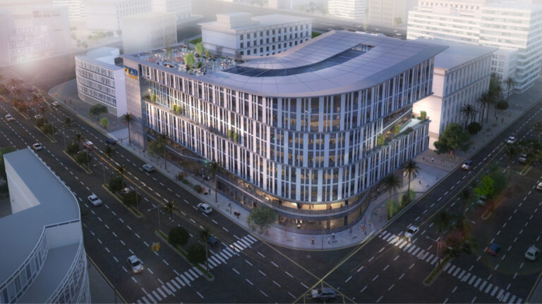 Industrial Development Bank is planning to construct a new headquarters to the Administrative Capital. Industrial Development Bank New Headquarters is a 2 Basements + Ground Floor + 7 Typical Floors, on a Plot Area of 5,590 SQM, 2,236 SQM Footprint and a Built Up Area of 29,068 SQM.
