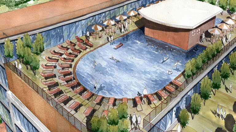 The building is a mix of studios, 1 bedroom,3 bedroom. The total area is 550,000 ft2. The building includes swimming pools, gymnasium, entertainment center, and spa. It is designed to be energy efficient.