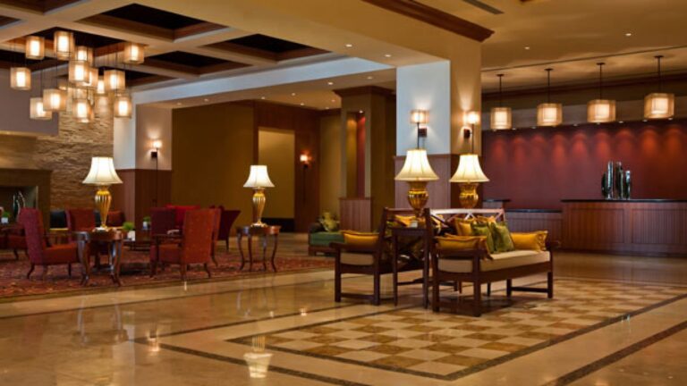 The hotel is a five star with rising height of 189.33 meters on a plot area of 10,992 sqm. Consisting of 50 storey tower comprises 249 standard and executive rooms and suites, including 1 Presidential Suite, 2 VP Guest Rooms, and club Lounge all located on the upper 20 stories of the Tower. Added a 16 floors of prestigious rentable office spaces with public ground floor lobby. Facilities contains of : Brazilian Restaurant, Champion Bar and French Bistro. With a pre-function area and grand ballroom banquet suite at 1st level. A luxury health club opens to a series of outdoor pools and landscape patio space.