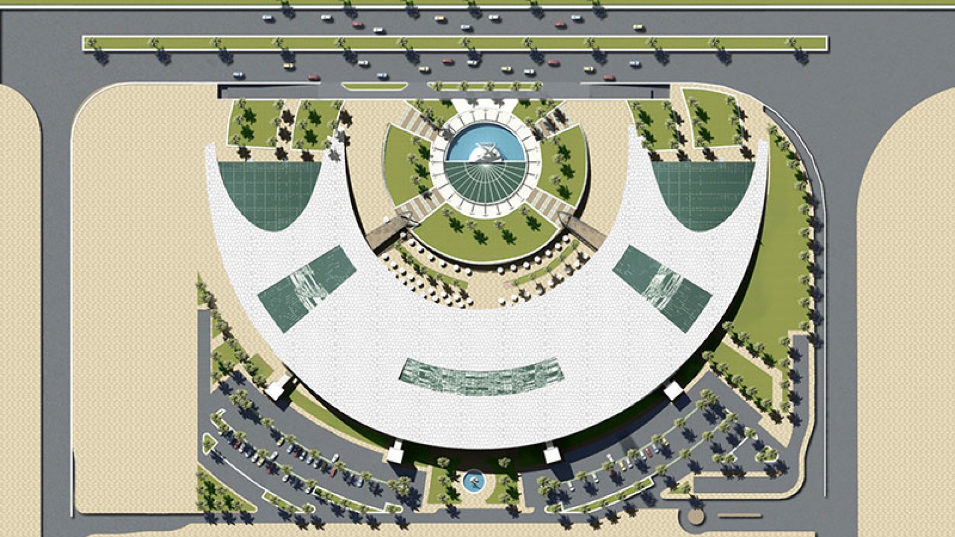 The architectural concept design of Palm Hills Mall presented to Green Hills Development that isto be located in the most important corner in 6th of October City across from Grand Heights Compound, Mall of Arabia and Ahmed Zeuil University. The strategic location shall provide the project with uniqueness and competitive advantage. The project’s area is about 14,500 square meters with a total built up area of about 14,000 square meters.