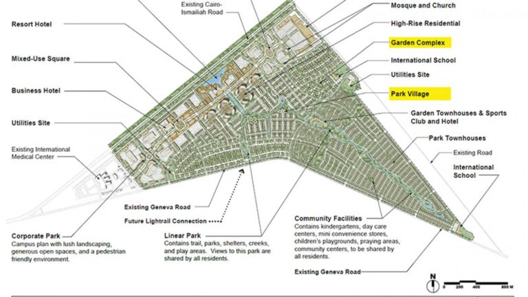 The project offers a mix of uses including a retail power center, a corporate office park, resort hotel, lakefront dining, and a variety of residential products. The city is positioned to become a vibrant hub for the development of Greater Cairo.